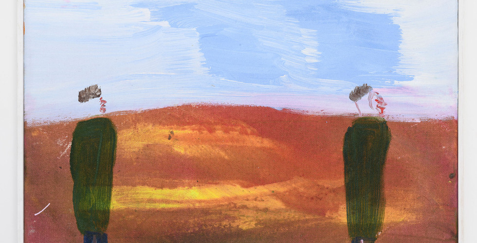 But everyone has something powerful and intellectually terrible: your faces are not intended to be adored, as it usually is the case with other artists; rather, they want to be studied. Even though they have large eyes, they are inwardly blind, and they are aware of it. They tell their own stories and live only for themselves. So much so that for you, the face, and particularly the word grimace, whose lexical sound attracts you, is not at all a threatening space. On the contrary, it's a breathable space where, along with them, you breathe the air. These eyes, so blind, looking closely at us with a subtle disinterest, now appear wide open, sometimes immersed in atmospherically charged environments. They have flowers in their gazes like air traceries. They are oriented to a wind that brings rain and sighs. They are a perch for memories, lovers of a vocation for slowness, a wise immobility as an attribute to the intention of fully experiencing the place and its rugged nature. All of them await action and in their silence, they contemplate each other. Moreover, when we return to look at them individually, we will notice that one stroke of color has been yielded to the other out of pure love for complicity.