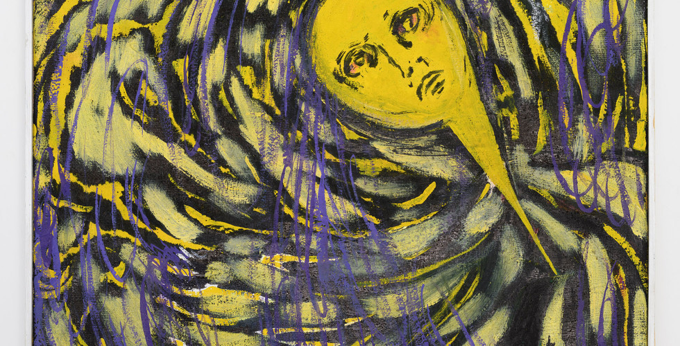 Both groups of works in the show reflect on the sense of predetermination of certain living conditions. Maria Vittoria Pinotti states in her critical text: “For David Noro it is natural to force the categorical limits of painting due to emotional overheating, so that the work hosts and challenges the outline of a plot. This leads him to combine, without any expressive protocol but with imagination and virtuosic madness, secret and mnemonic hallucinations. And by addressing one topic, it unconsciously incorporates others, such as the sense of belonging to a culture, the value of the cyclical nature of life, private affections, collective duties and the perception of the vicious daily monotony that it intends to break at all costs. [...] the instinctual nature of the line embraces something deliberately childish, fairytale-like, in the broadest and most disturbing sense of the term, allowing a glimpse of a world absorbed and suspended in its generous giving of itself as a vision. Therefore his paintings do not allow themselves to be caressed by the gaze, but rather want to suggestively intimidate due to the visual dissimilarity of a material full of soft thickness that thrives on often violent color contrasts".